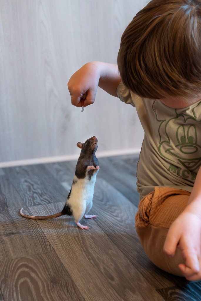 Ratten sind sehr lernfähig und menschenbezogen. Sie erkennen Stimmen, reagieren auf vertrauten Personen und zeigen Interesse am Kontakt mit Menschen – gerade zu Kindern. Ihre Interaktion ist ehrlich, direkt und frei von Wertung.
